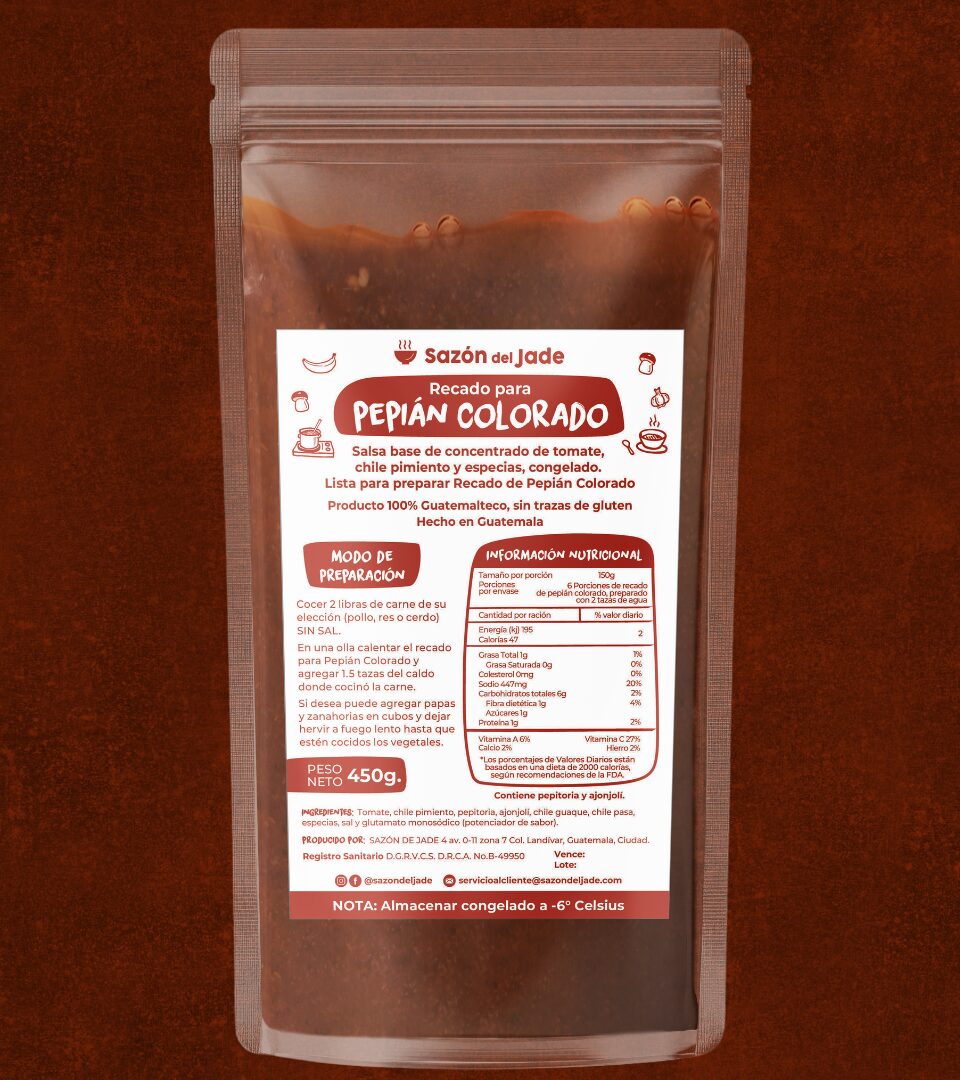 | Ingredientes | Ajonjolí, Chile guaque, Chile pasa, Chile pimiento, Especias, Glutamato monosódico (potenciador de sabor), Pepitoria, Sal, Tomate |